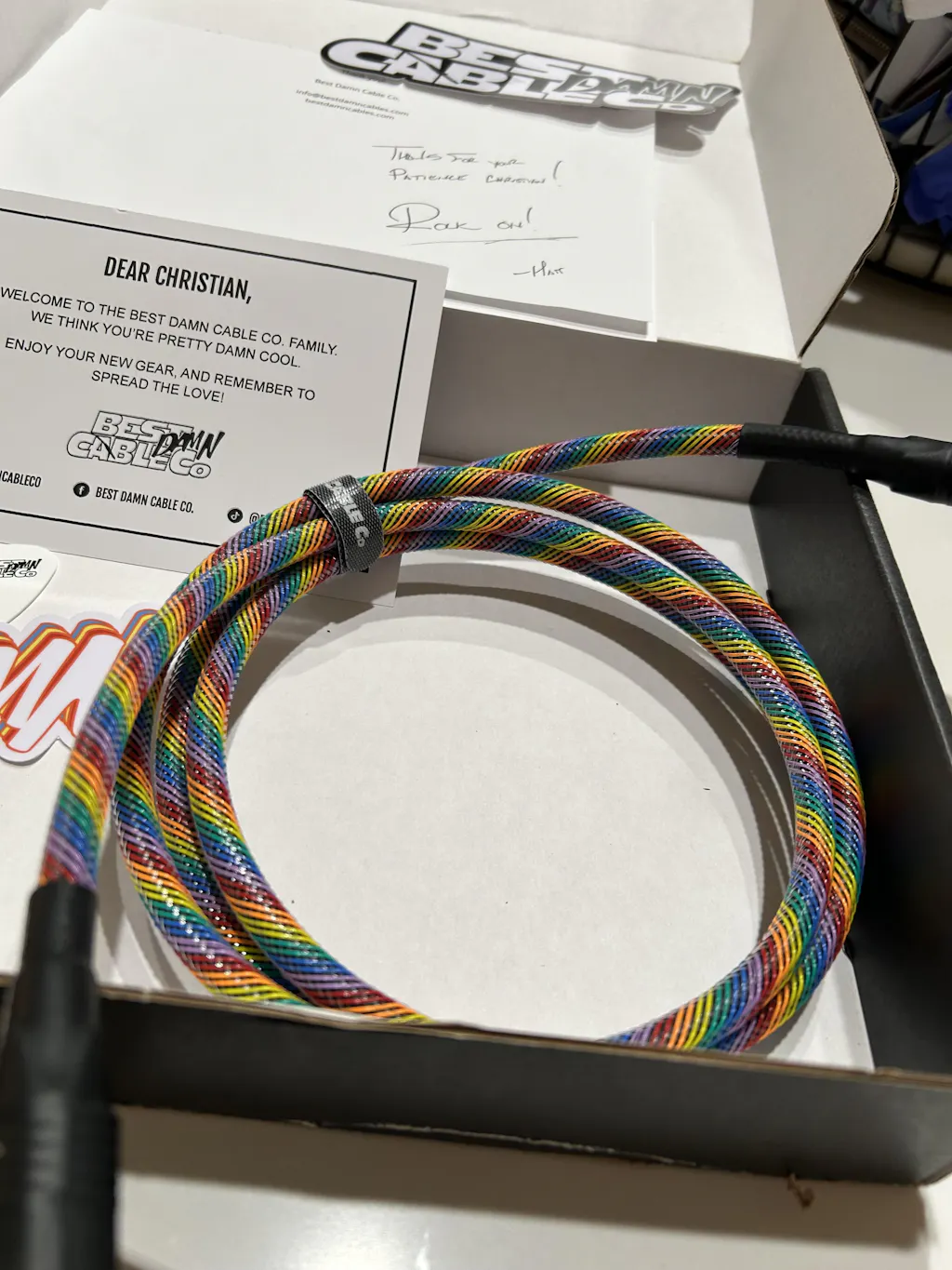 Durable as all hell and guaranteed to have people looking. Available in multiple different sleeving options with either straight or right-angled Neutrik connectors, the Best Damn Cable is the industry standard when it comes to reliability.